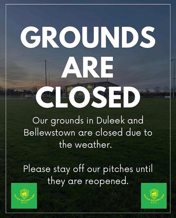 All club grounds are currently closed due to the bad weather - a notice will be published once this situation changes to confirm re-opening, thanks.