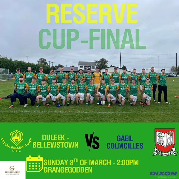 This Sunday our reserve adult men’s team take on Gaeil Colmcille in the Division 3 Reserve Cup Final! Throw in is at 2pm in Grangegodden. Make sure to get out and support our adult men as they make a bid for their first piece of silverware for 2026 💚💛