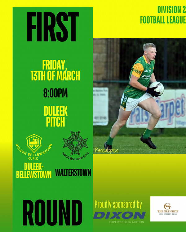 Tonight is due to be the first round of the league for our adult men as they take on Walterstown. It’s due to take place in Duleek at 8pm. Please keep an eye on our socials today as the venue may change due to pitch playability. Best of luck to our adult men and their management team as they kick off their 2026 league campaign 💪🏻