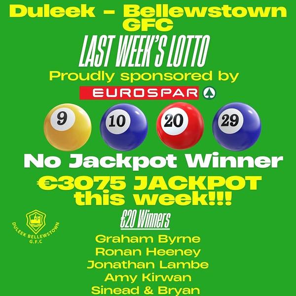 Well done to last weeks €20 winners and thank you to our sponsors Eurospar Duleek 🫶🏻
