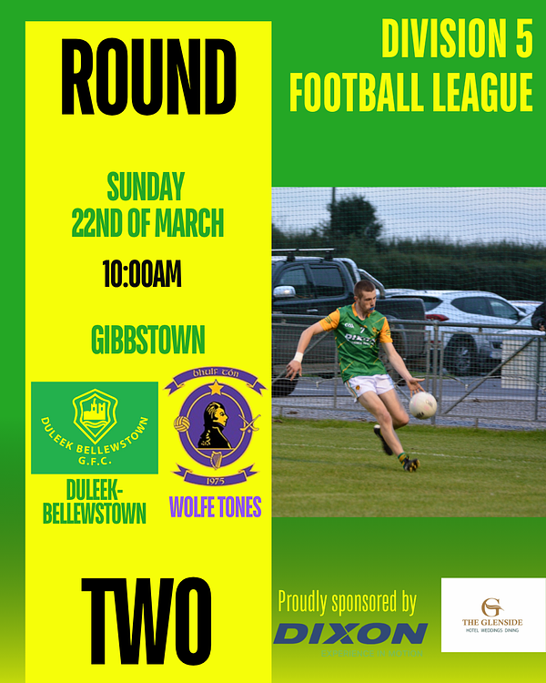 Tomorrow our division 5 adult men’s team take on Wolfe Tones at 10am in Gibbstown. As their first round game has been refixed it is their second round of the league and they would love some support for the away fixture. Best of luck to our division 5 players and their management team 💚💛